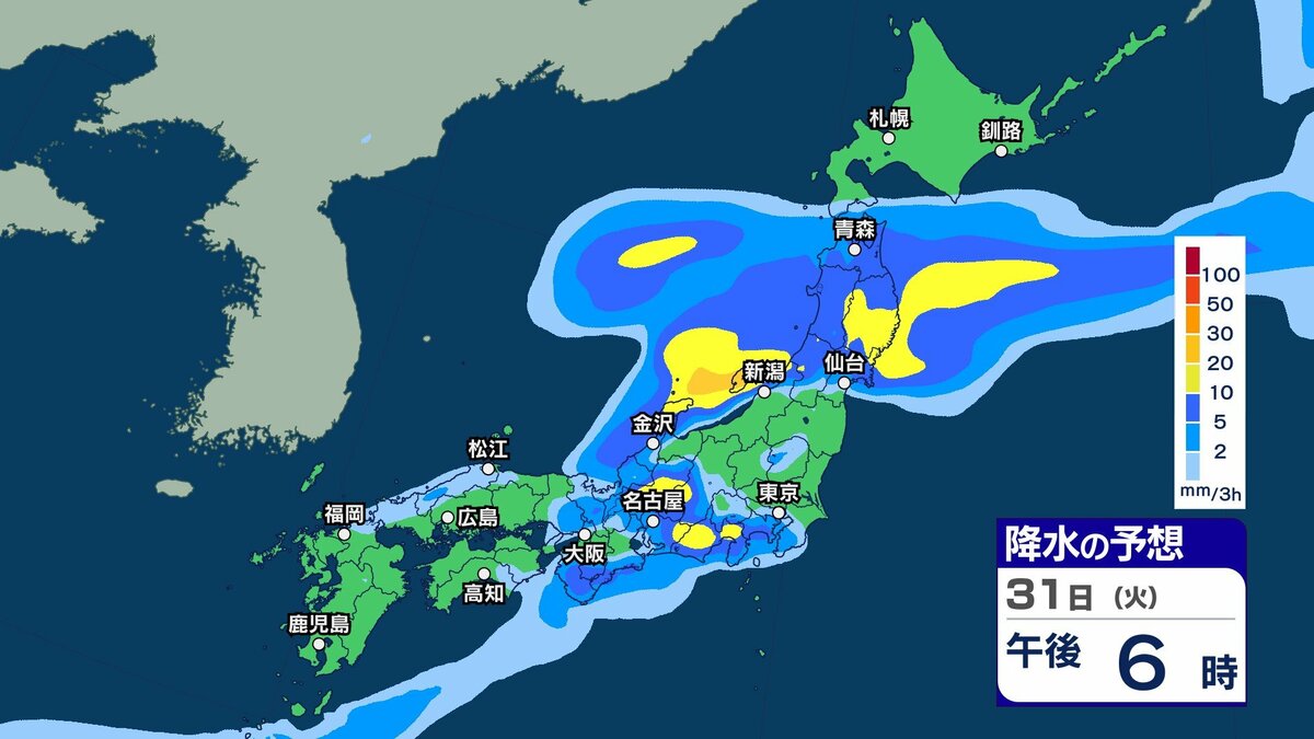 31日(火)は九州〜東北で大雨・暴風のおそれ