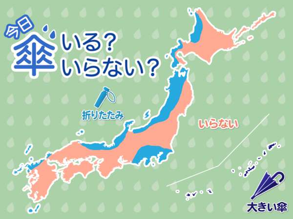 - 沖縄・奄美:午前を中心に雨が降りやすく、しっかり降る時間もあるため大きい傘が必要